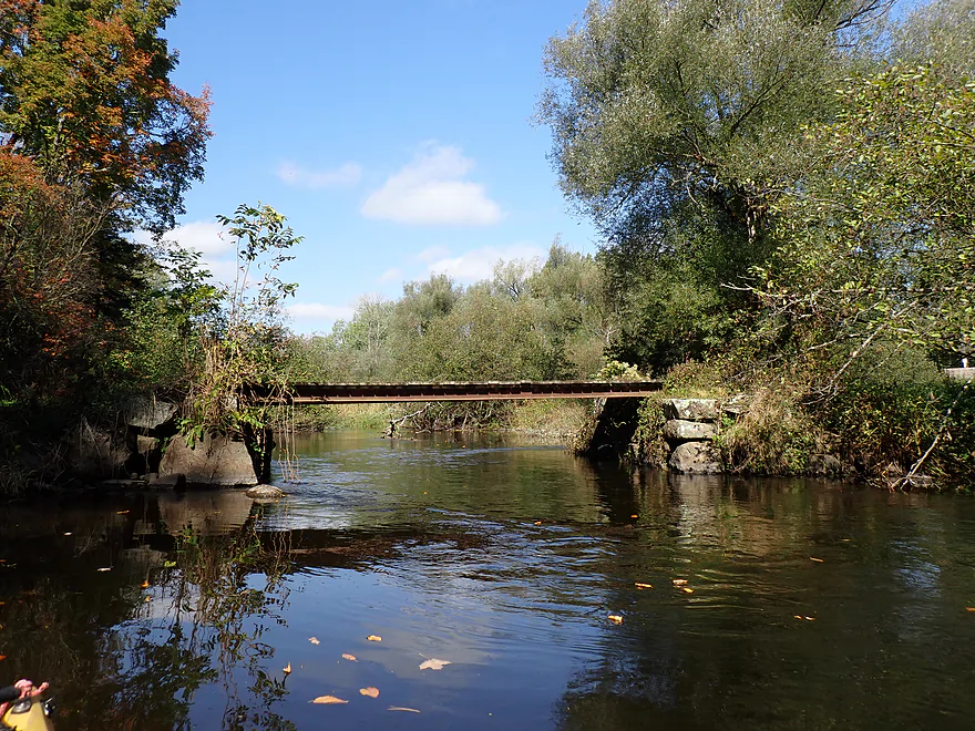 - Town Hall Road (0.9 miles upstream from Prairie Forks): You could get out by the utility station and this is likely an ok bridge access. The leg after Town Hall Road is simple but pleasant.
