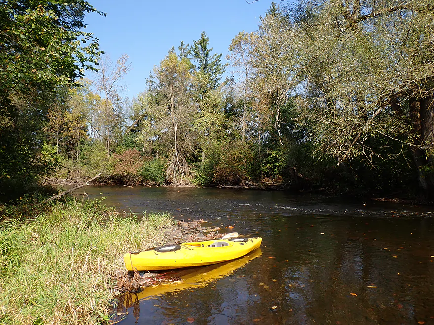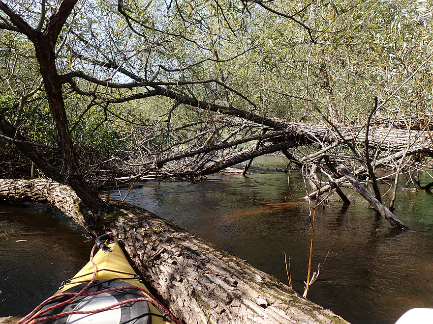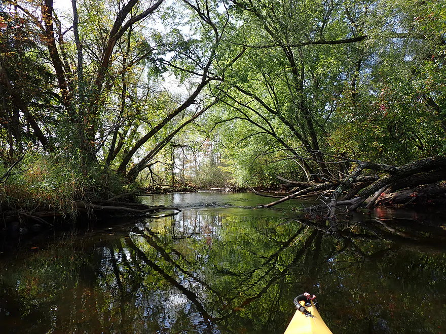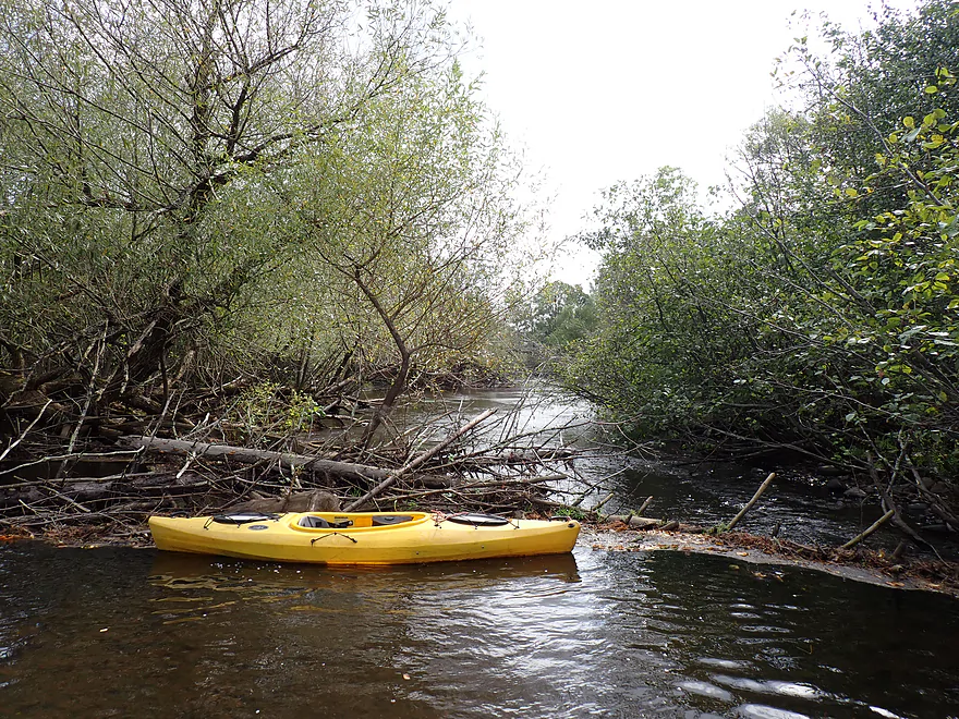 - Upstream from Hanson Road Access: The river here is too narrow to paddle.