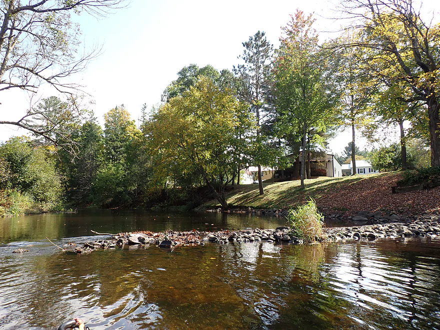 - Bridge Drive to County Road CCC: 0.8 miles. Rocky with hazardous Class 2-3 rapids which requires a difficult 600′ portage through thick woods. There are also several bad logjams and a dangerous low bridge. This stretch though is scenic. Here is a 360 picture.