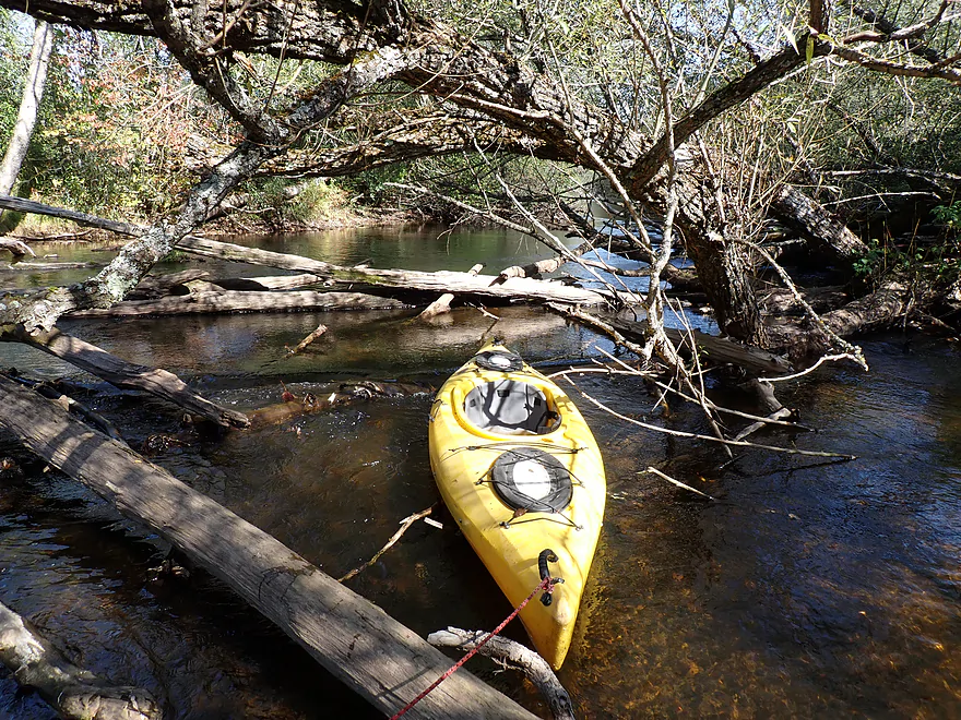 - Bachelors Lane to Town Hall Road: 2.3 miles. Not as good of a leg with scrubbier trees and six logjams. Most of the portages weren’t difficult, but two were tricky.