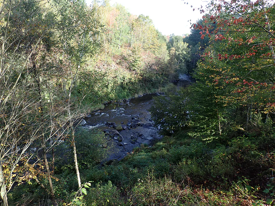 - Hay Meadow County Park to Shady Lane Ave: 2.5 miles. Scenic section with boulder gardens, outcrops and dells. Includes some Class 2/3 rapids.