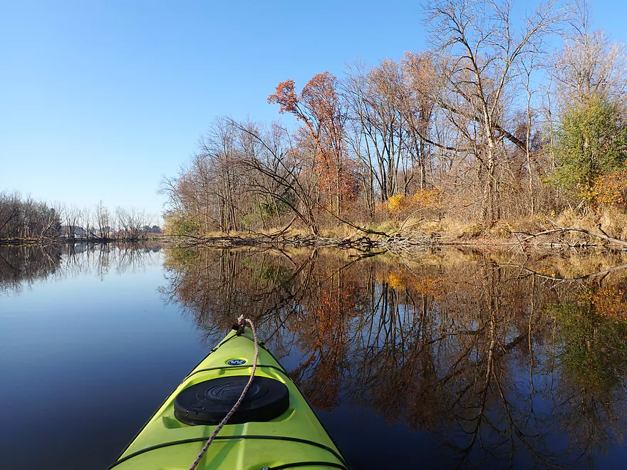 - Riveredge Park to Hwy DW: 2.7 miles. An open stretch through wetgrass and a state natural area. One logjam needs to be portaged.