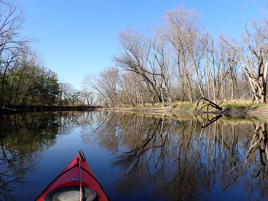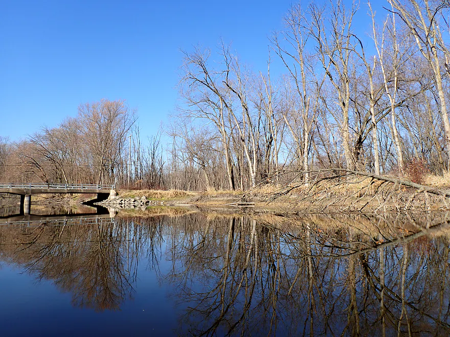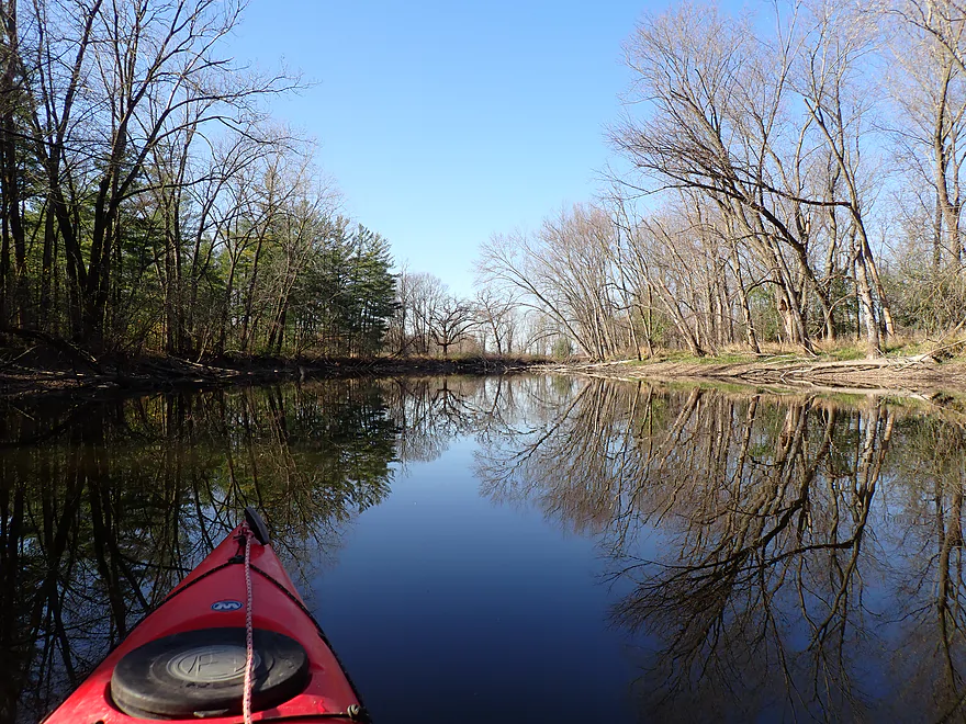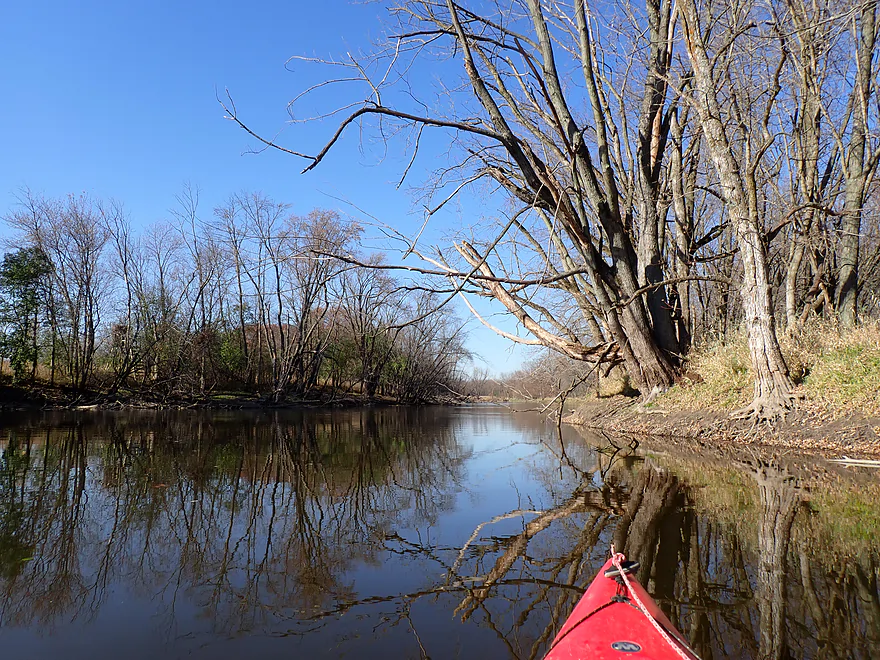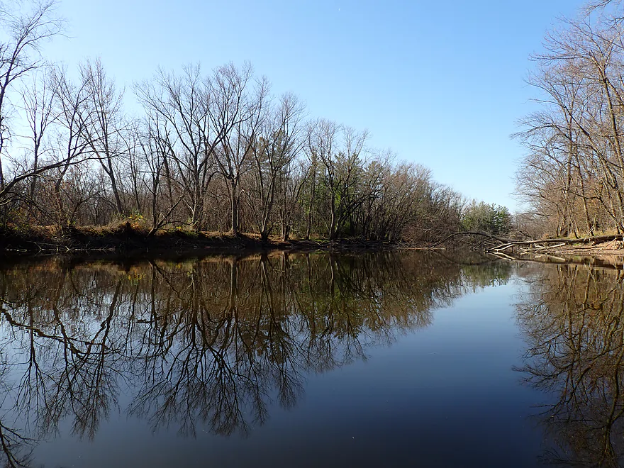 - Riveredge Park to Hwy DW: 2.7 miles. An open stretch through wetgrass and a state natural area. One logjam needs to be portaged.