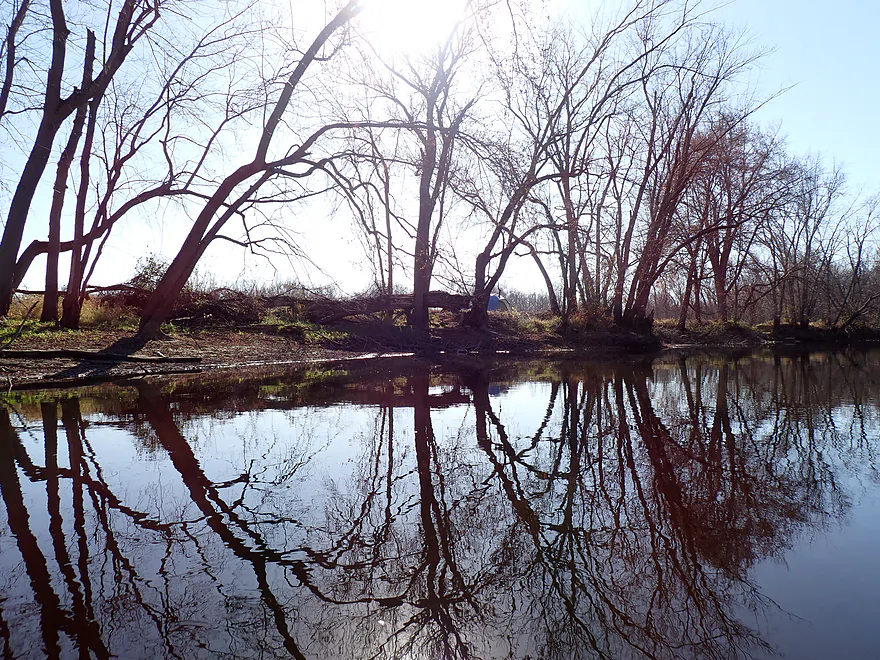 - Hwy P Landing (6.0 miles downstream from Hwy F): Hwy P is a great access. The stretch between Hwy P and Hwy F is slow but pleasant.