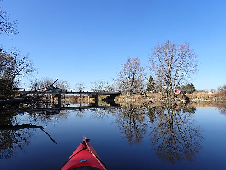 - Roadside Park to E. Waupun Road: 0.9 miles. River widens, slows, and gets less interesting.
