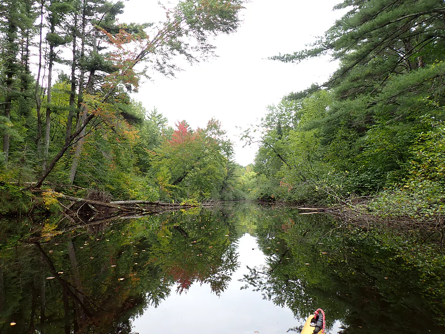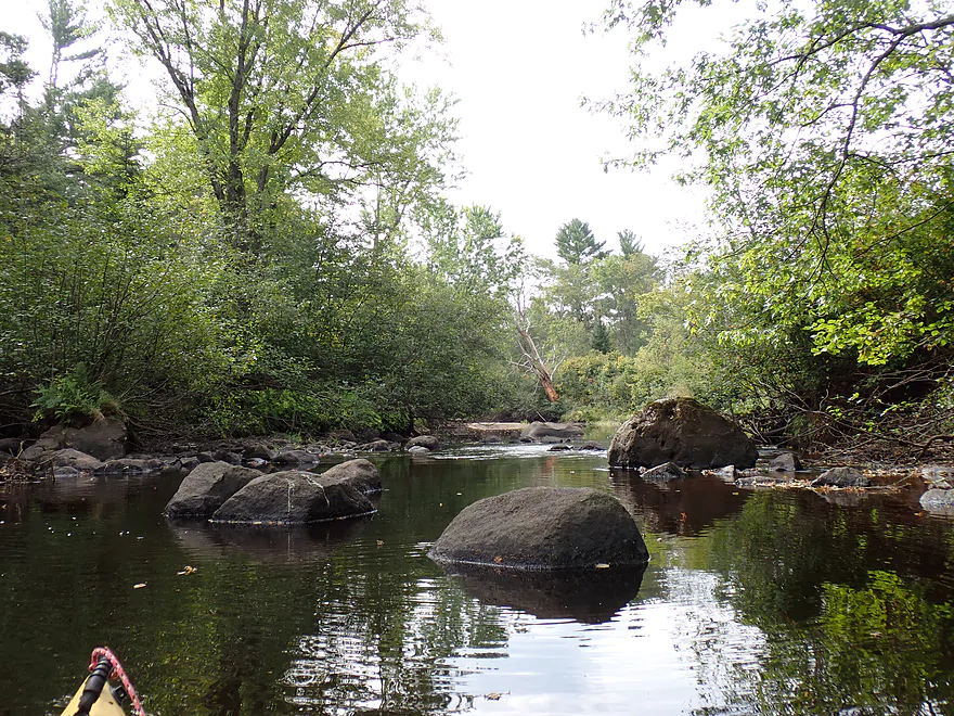 Early on I encountered a few logjams, but they were easy portages. While in general the river wasn’t that rocky, I did encounter a few small boulder gardens, one of which I had to portage. A beaver had built a dam on top of one of the boulder gardens, which I found amusing.