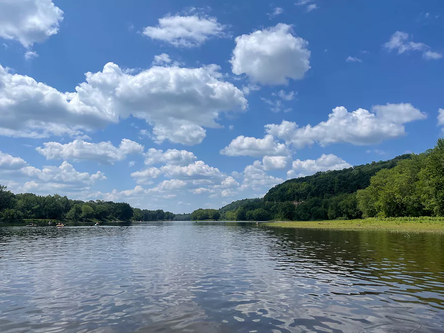 After passing under Hwy 243, about 80% of the people ended their trip at Osceola Landing. There are very high cliffs and bluffs on the Wisconsin side past the bridge. There are also multiple springs and waterfalls along the Wisconsin side. Vegetation blocks some of the views but they are definitely heard. Outcrops continue until Cedar Bend where the outcrops transition to the Minnesota shore. There are more springs and small waterfalls on that side.