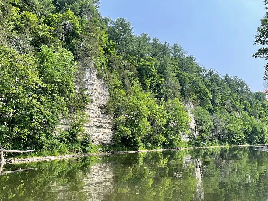 The Upper Iowa River is a premiere Driftless kayaking experience. This trip has everything that you would want in a trip. Crystal clear water, the shore lined with outcrops, multiple springs, breathtaking scenery, and the famous Palisades of the Bluffton Bluffs.