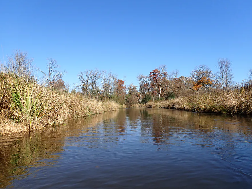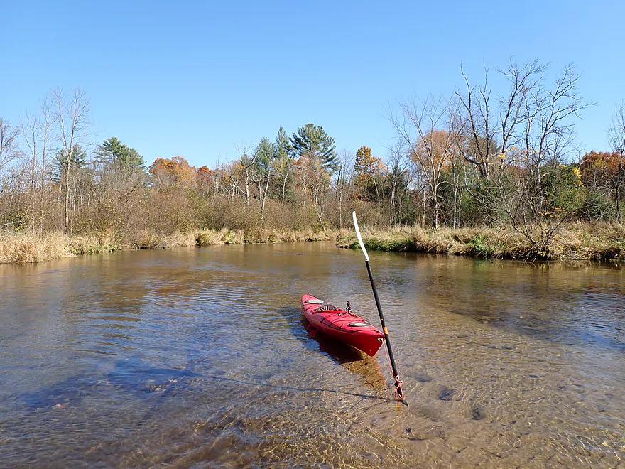 - 1.5′: Typical late fall depth…on the low end but should be fine for paddling.