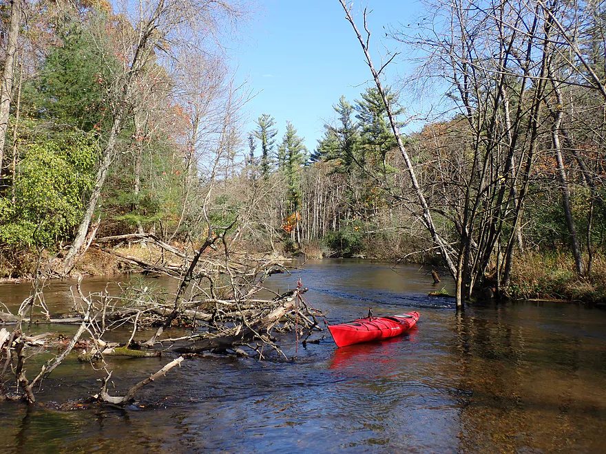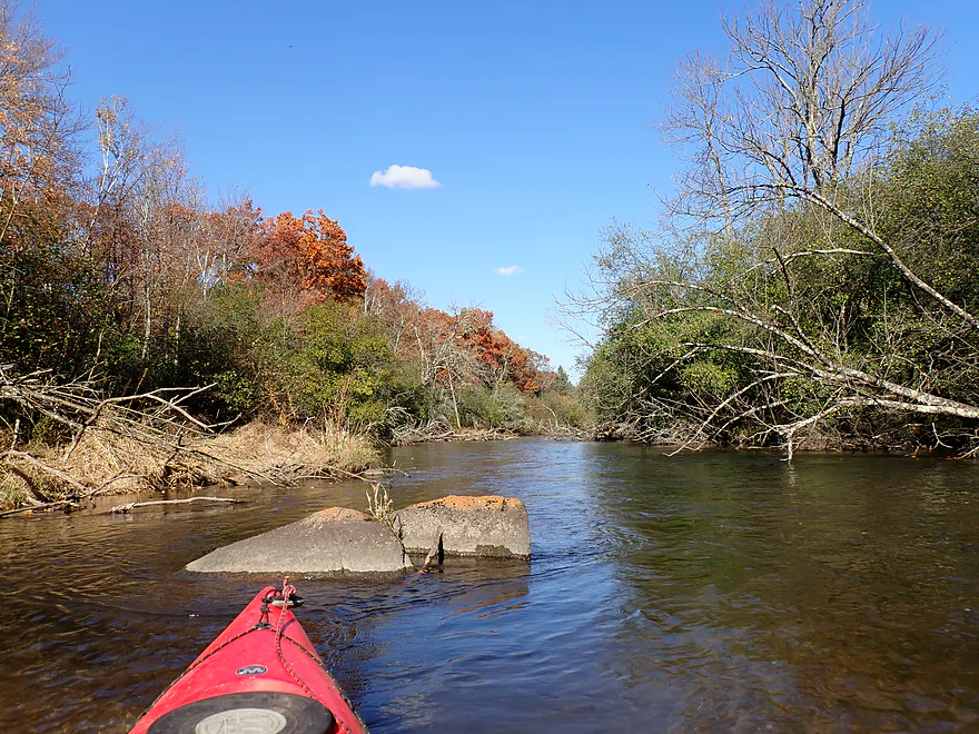 - Durant Road to Cobbtown Road: 1.4 miles. A nice section, but not as good as upstream parts with less boulder gardens and rapids. Maybe one logjam.