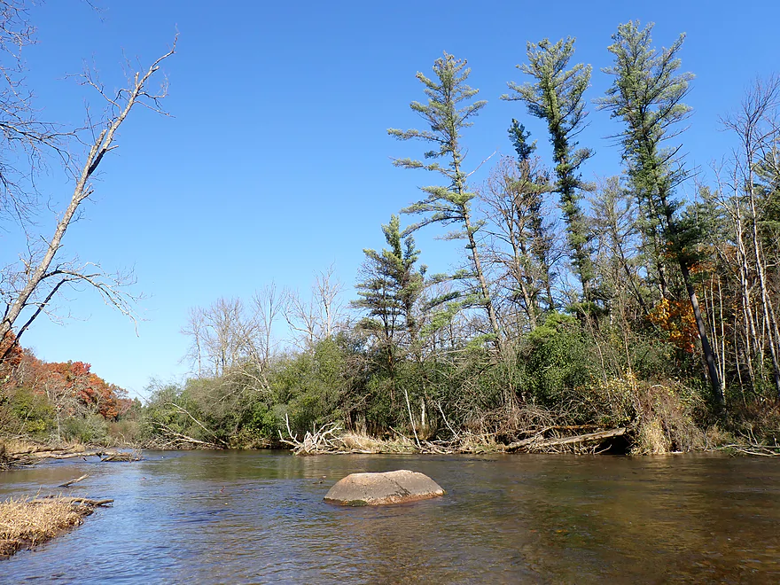 - Stedman Park to Durant Road: 2.1 miles. A really nice leg. Starts with some terrific boulder gardens, rapids and pine stands by Stedman Park. River then flattens out for the middle portion and becomes a bit less interesting. The final leg features some terrific pine stands.