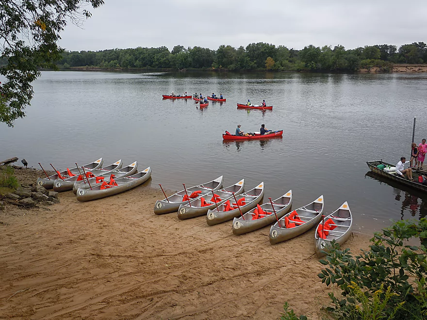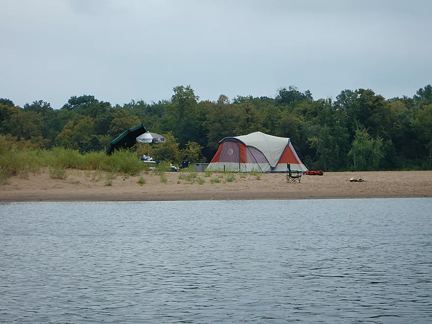 Camping and picking a sandbar require a bit of strategy… Use satellite maps to get a feel for where the best ones will be (roughly). Many good sandbars hide on the downstream side of large wooded islands. Generally speaking, on a weekend most sandbars will be taken, but the further you paddle, the more likely you’ll encounter an uninhabited one. Most are so large though that they can reasonably accommodate multiple campers. Even if you don’t camp, you should at least picnic or take a break on a sandbar to take in the experience.