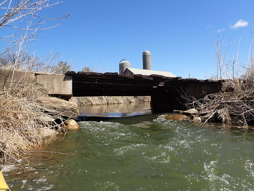 - County Line Rd to Grant Rd (1st bridge): 1.6 miles. Mostly open, small, and riffly. Likely 2-3 outcrops. An intriguing high water prospect.