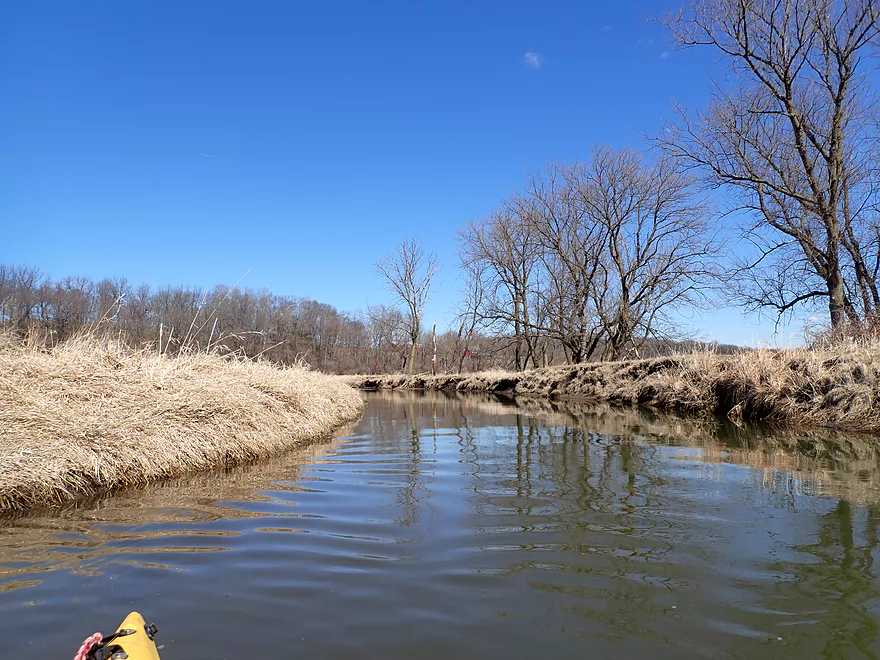 - S. Lake Rd to Hwy N: 4.9 miles. An open stretch with twisty mud banks. Pleasant stretch with several logjams near the end (flexible paddlers can get past these without portaging).